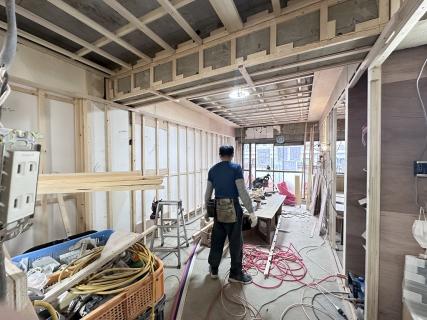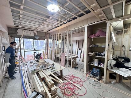 自社設計施工物件の現在のリノベーション進捗状況をお知らせ致します。